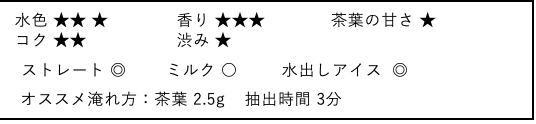 オススメ淹れ方:茶葉 3g 抽出時間 3分