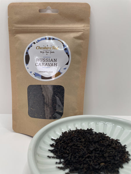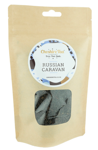 中国産紅茶の燻し香が特徴のロシアンキャラバン。実際の茶液は、淹れる前の茶葉の香りほど強くはなく優しくマイルド。渋みも少なく飲みやすい。いつもとちょっと違う紅茶を飲みたいときにもおすすめ。食後のアフターディナーティーなどほっと一息つきたいときに良いリラックスティー。少し酸味が出やすいけれど、水出しアイスティーにするとスモーキーさはそのまま酸味が出にくく飲みやすくなる。カップ水色は淡いけれど、ミルクティーにも合う。